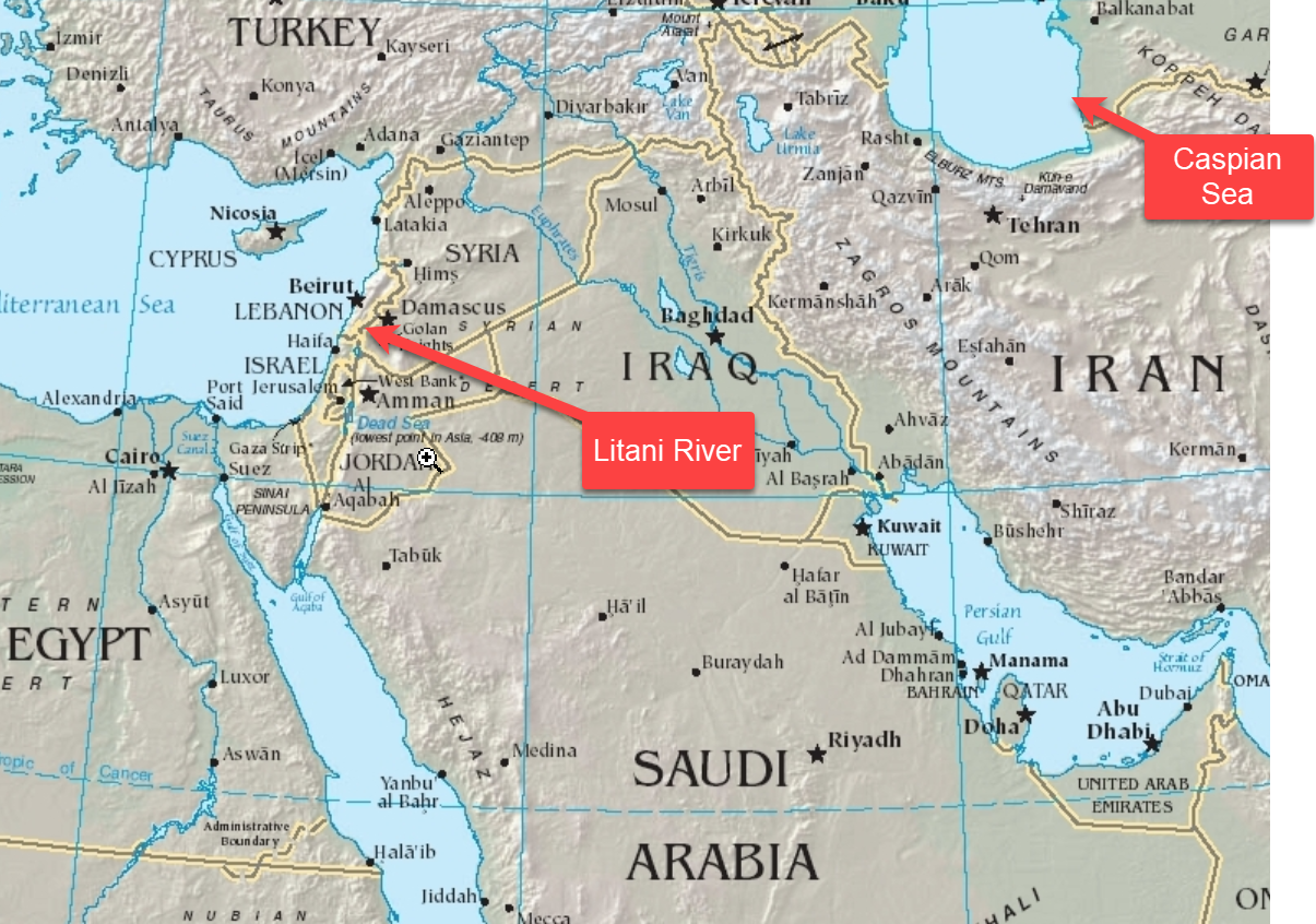 Litani River: East-West river in Lebanon, goal of current IDF effort to push Hezbollah away from the border with Israel.
