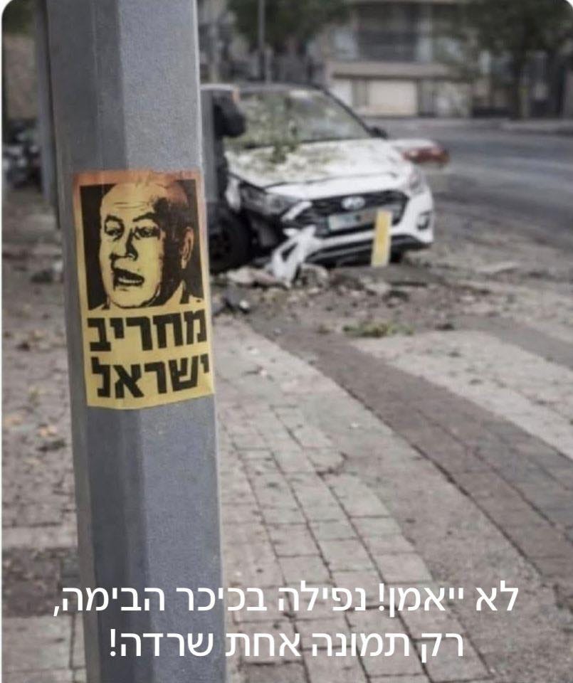Caption: Unbelievable! An Iranian rocket came down in Habima Square and only this one picture survived!